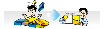 ライセンスだから、箱がありません。1製品ごとの箱やマニュアルの保管場所に困ることなく、スペースの削減ができます。